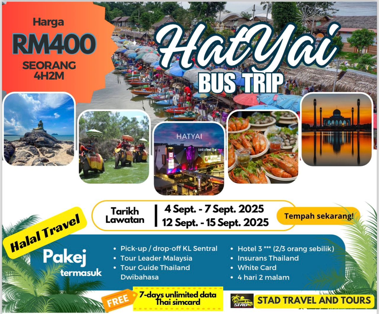 “Percutian ke Hatyai dengan Stad Travel memang puas hati! Itinerary padat, hotel selesa & makanan halal 👍”